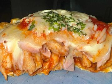 Seasoned chicken breast smothered in a parmigiana sauce and mozzarella Cheese.