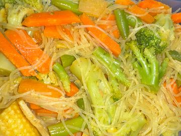 A mild curry noodle dish with vegetables