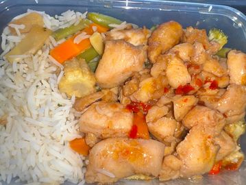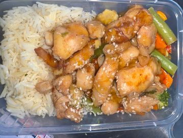 Honey chicken and stir fry with rice