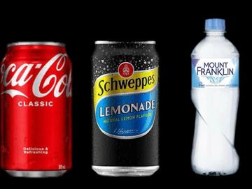 Coke, Coke Zero , lemonade, water